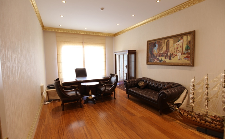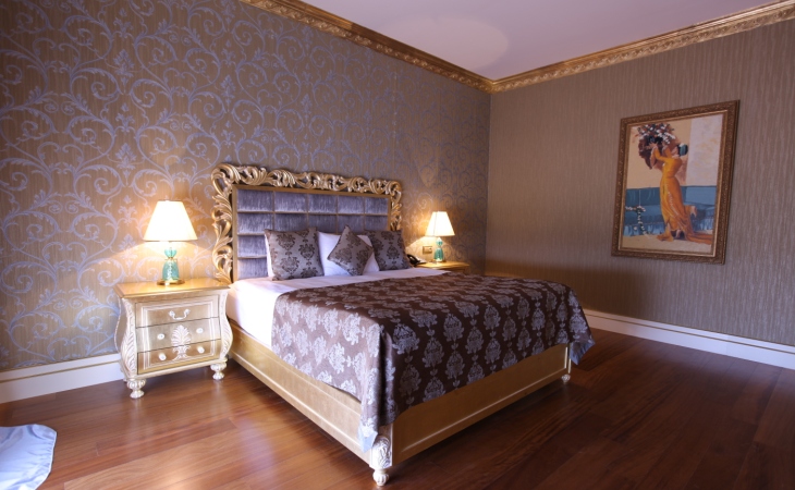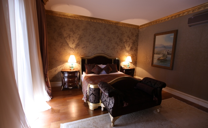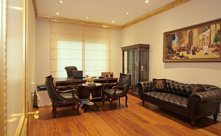 пол – ковровое покрытие (главное здание); ковровое покрытие, паркет и керамическая плитка (в виллах)