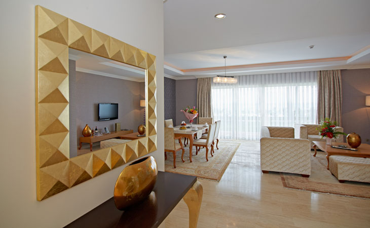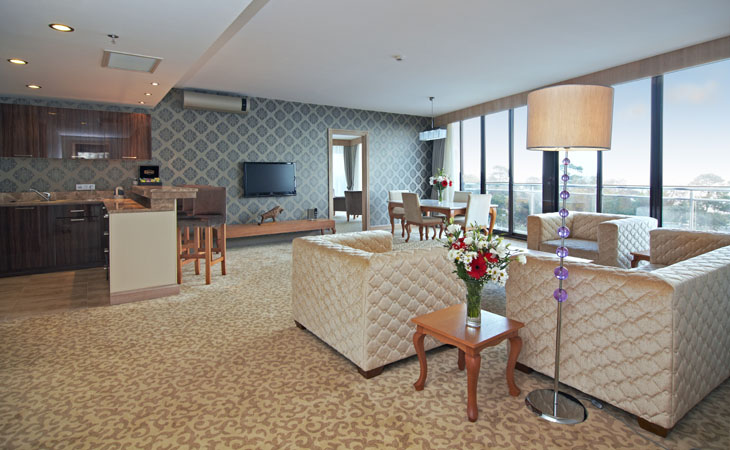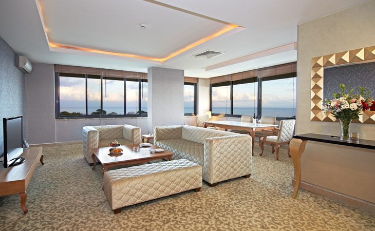 1 Executive Suite: (105 кв.м) трехкомнатный номер с видом на море, гостиная, 2 спальни с дверью, 2 ванные комнаты, макс. 4+1 чел.