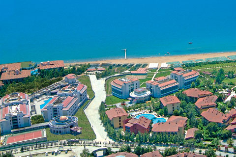 в 55 км от аэропорта г. Анталья, в 13 км от г. Манавгат, в 100 м от собственного пляжа.