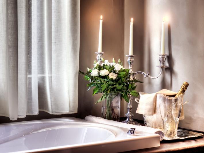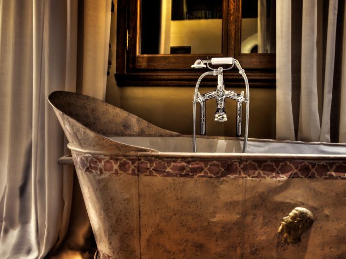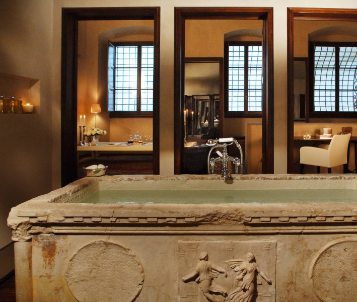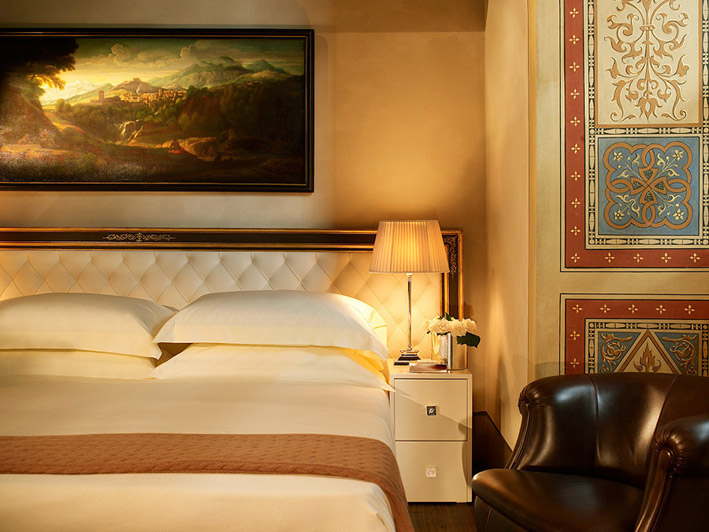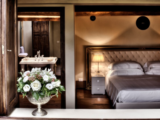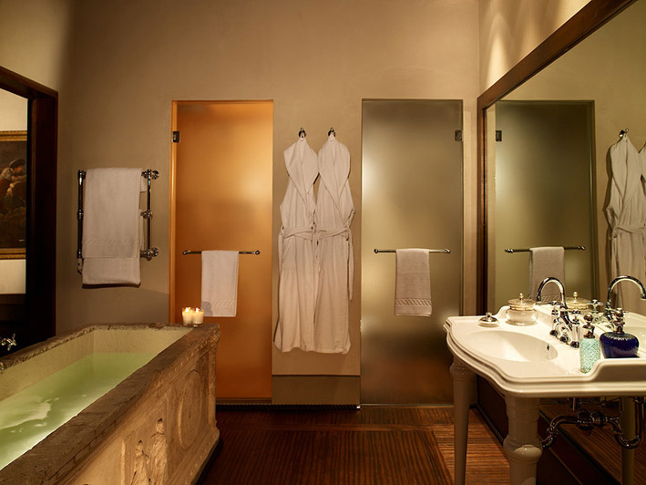 Affresco Suite (73 кв.м) – один из самых приятных сюрпризов отеля – комната, которая раньше использовалась как кухня, была превращена в роскошный номер. Впечатляющие произведения искусства и античная каменная ванная дополняют интерьер.