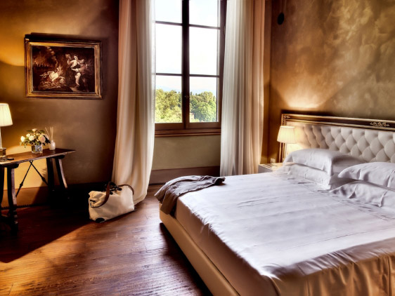 De Luxe Rooms (30 кв.м) – уютные номера расположены в самой вилле, с красивыми видами на сельские пейзажи Тосканы. В номерах этой категории нет возможности размещения третьей кровати.