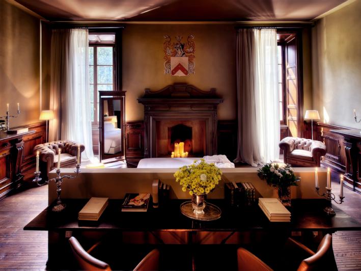 Tegliacci Suite (68 кв.м) – настоящая атмосфера Тосканы, гостиная с камином и восхитительным видом на склоны Fiesole. Может быть соединен с номером Salviati De Luxe, общая площадь составит 156 кв.м.
