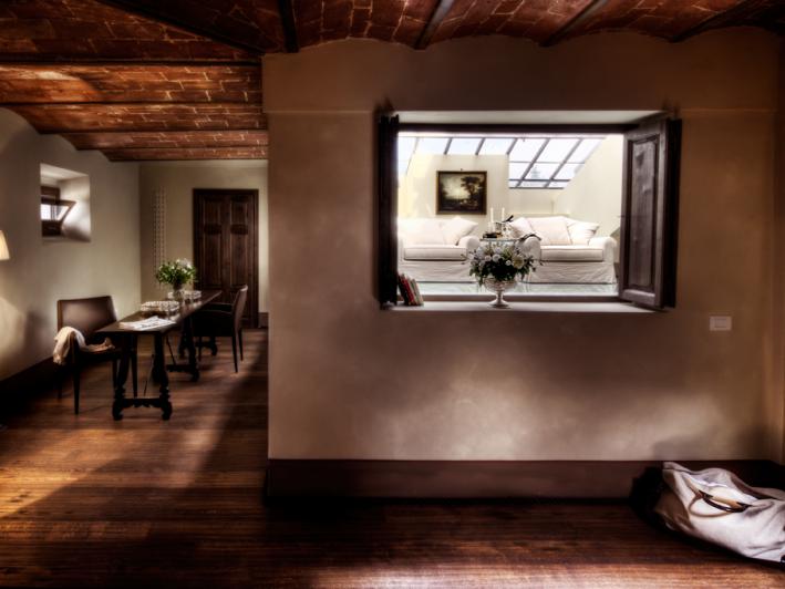 Marcello Suite (92 кв.м) – трехуровневый номер, расположен в верхней части башни, с живописным панорамным видом на Флоренцию с частной террасы.