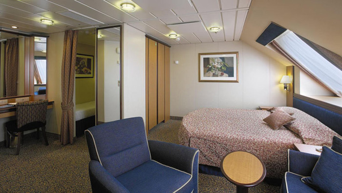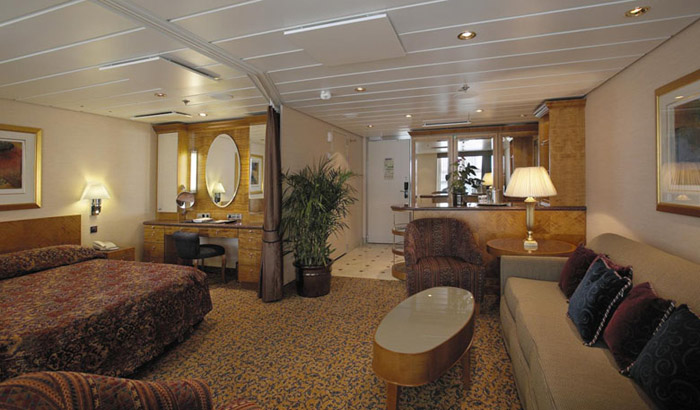 Каждая каюта оформлена в мягких, нежных тонах, чтобы создать атмосферу спокойствия и уюта. В каютах предоставляются круглосуточное обслуживание с доставкой еды и напитков, телевидение, радио, прямой телефон и фен. Все каюты подразделяются на четыре основные типа, которые могут отличаться на каждом отдельном корабле, включая каюты, предназначенные для размещения больших семей и компаний друзей. Выбрав соответствующий тип, Вы можете выбрать определенную категорию каюты, которая наиболее полно отвечает Вашим запросам.