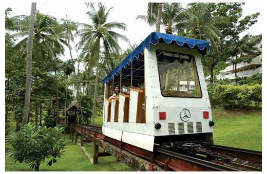 Корпуса отеля расположены на пологом, покрытом тропическим парком холме, с которого к морю спускается монорельсовая дорога и лестница. Комплекс состоит из 3-х и 4-х этажных корпусов, шести 1-но этажных бунгало и одной отдельно стоящей виллы.