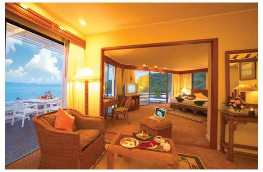 Шикарный номер с большой открытой верандой и невероятным видом на бирюзовый океан. Здесь часто останавливаются знаменитости и известные люди. Номер состоит из спальни и гостиной зоны.