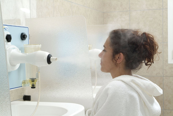 Ингаляции и аэрозоли термальной водой - особый состав термальной воды (соль, бром, йод) обладает очищающим действием на слизистую верхних и нижних дыхательных путей. Ингаляции и аэрозоли показаны для лечения ринитов, фарингитов, ларингитов, гайморитов, отитов и хронических бронхитов. Ингаляции и аэрозоли рекомендуются также для детей.