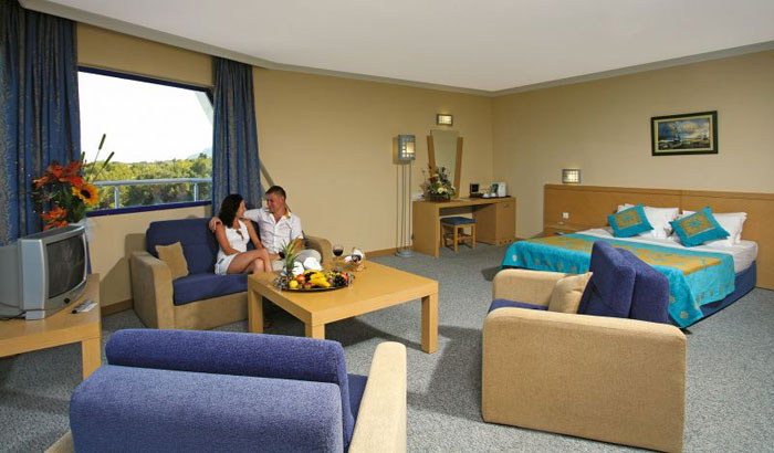 Corner Suite (36 кв. м) – двуспальные кровати, спутниковое ТВ, ТВ диагональю 51см, прямой телефон, мини-бар, центральный кондиционер (горячий/холодный), ковровое покрытие полов, ванная комната с ванной, санузел, фен, сейф. Номера с прямым видом на море и с балконом. В номерах может проживать минимум 3 взрослых, максимум 4 взрослых.