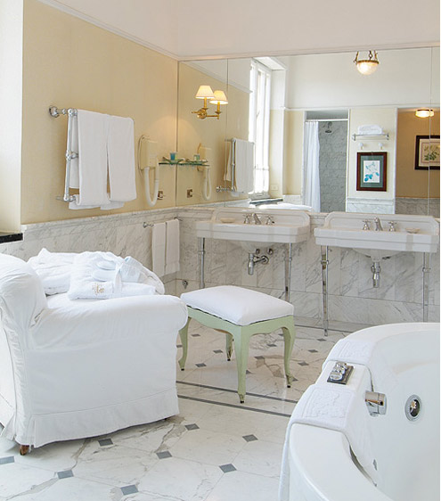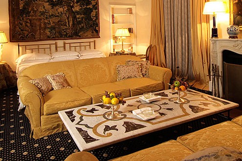 Во всех люксах отеля есть отдельная ванная комната и дополнительная гостиная. Кроме того, каждый люкс располагает балконом или террасой с видами на исторический центр Рима, в том числе на церковь Нагорной троицы, расположенную на вершине Испанской лестницы, площадь Императора Августа Цезаря и многие другие выдающиеся памятники. Из люксов на верхних этажах открывается вид на купола домского собора Св. Петра в Ватикане.
