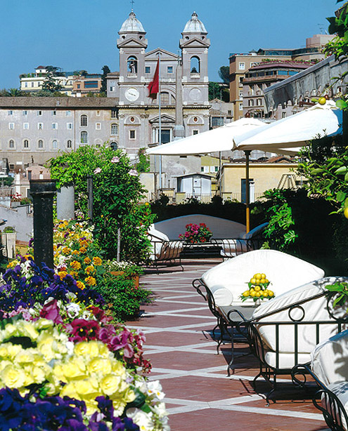 Лимонная терраса - это благоухающее место, за которым мы круглый год тщательно ухаживаем. На террасе с 6 вечера до полуночи открыт коктейль-бар…. (закрыт по понедельникам). Предлагая непревзойденный вид на храм Нагорной троицы и Испанскую лестницу, является идеальным местом для наблюдения за сказочно красивым закатом солнца в Риме.