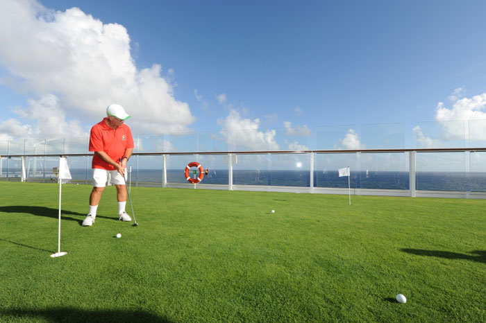 Здесь впервые в истории круизной индустрии реализована концепция "Кусочек живой природы на борту", воплощением которой станет настоящий зеленый газон площадью свыше 2000 квадратных метров! Эта "скромная лужайка" размером превышающая восемь теннисных кортов станет цетральной частью верхней палубы, будет называться "The Lawn Club" (Клуб на Лужайке) и предложит гостям элегантный отдых в непринужденной атмосфере. В зеленую зону входят: уютное патио ("итальянский дворик"), где гости могут провести время за чашкой кофе. Мастерская стеклодувов из Корнинга – основной элемент патио – предложит красочное и познавательное шоу с участием профессиональных стеклодувов. Мастера поведают об истории стекла, насчитывающей более 3500 лет, и поделятся секретами своего ремесла. Сансет Бар распложен в самой верхней точке лайнера Celebrity Solstice и предлагает гостям отдых и захватывающие виды на море.