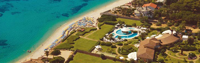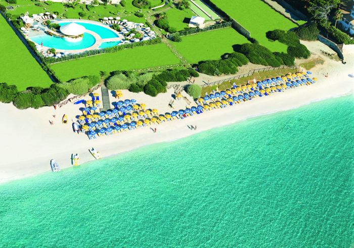 в одной из самых живописных бухт юга-запада Сардинии, рядом с раскопками древнего финикийского города Нора, и всего в 800-х метрах от городка Пула, в 40 км от столицы острова г. Кальяри. Ближайший аэропорт Кальяри – Элмас (43 км).