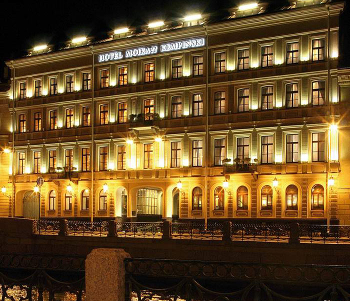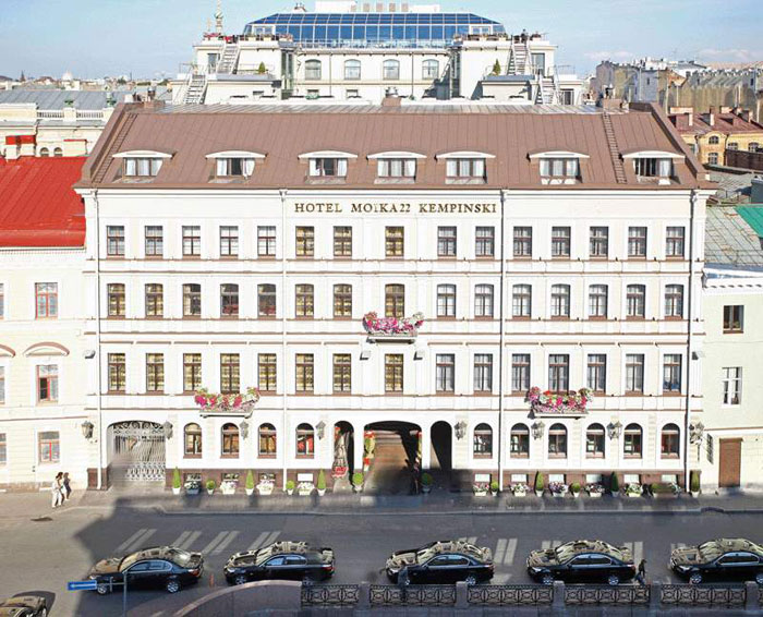 Отель Кемпински Мойка 22 находится в петербургском особняке, построенном Василием фон Витте во время правления царя Николая Первого. Классический фасад был бережно сохранён, а полностью реконструированный интерьер был декорирован предметами антиквариата и оформлен по последнему слову гостиничной моды.