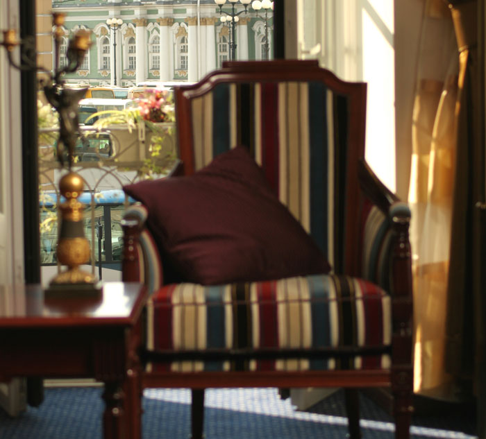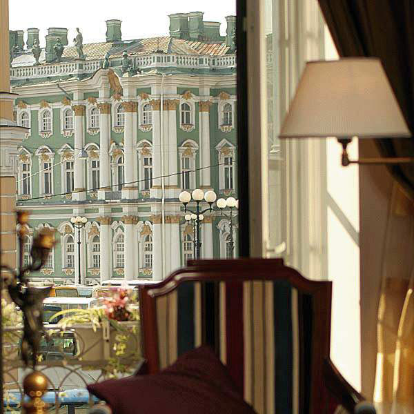 Это элегантное здание стоит на набережной Мойки — одной из множества рек и каналов, образующих исторический и культурный центр города, так называемый «Золотой треугольник». Петр Великий пожелал, чтобы новая столица стала «Окном в Европу», и отель выходит на одну из главных достопримечательностей Санкт-Петербурга — Дворцовую площадь и Государственный Эрмитаж.