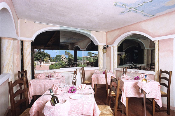 Интерьеры холлов и номеров выполнены в традиционном итальянском стиле, с использованием дерева и камня: двери оформлены в виде арок, потолки украшены яркими орнаментами или декоративными деревянными балками, полы выложены темной плиткой и застелены коврами ручной работы, мебель выполнена из плетеного дерева и дерева светлых пород. Из номеров открывается живописный вид на парк и большой открытый бассейн, расположенный всего в нескольких метрах от отеля. Бухта Маринелла славится своими превосходными пляжами и чистой морской водой.