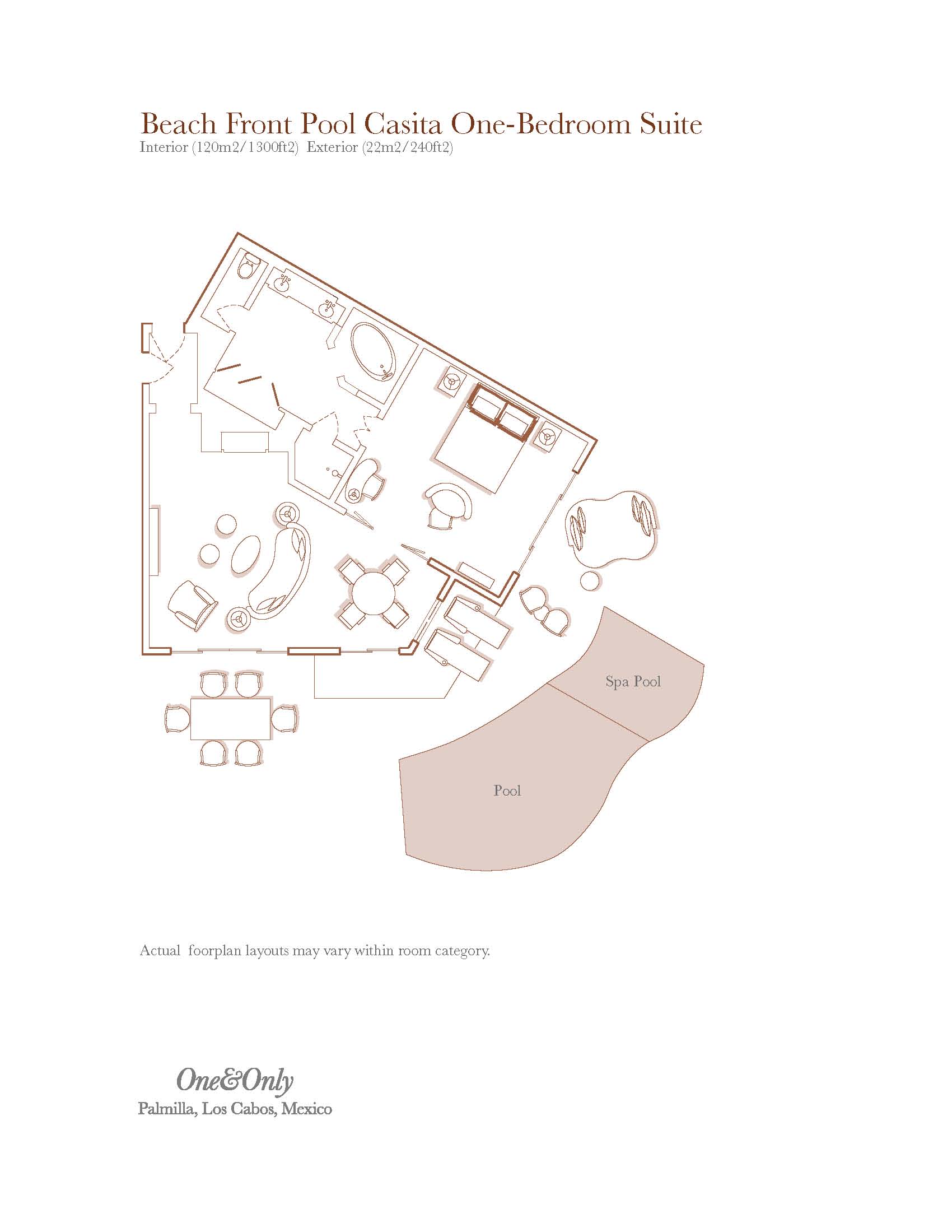 • Beach Front Pool Casita One Bedroom Suite (120 кв. м) — c видом океан, состоит из спальни (кровать King-size), гостиной, ванной комнаты, отделанной мрамором с душем и ванной, гардеробной, бассейна (22 кв. м) с джакузи, террасы с зоной отдыха (с диванами для отдыха).