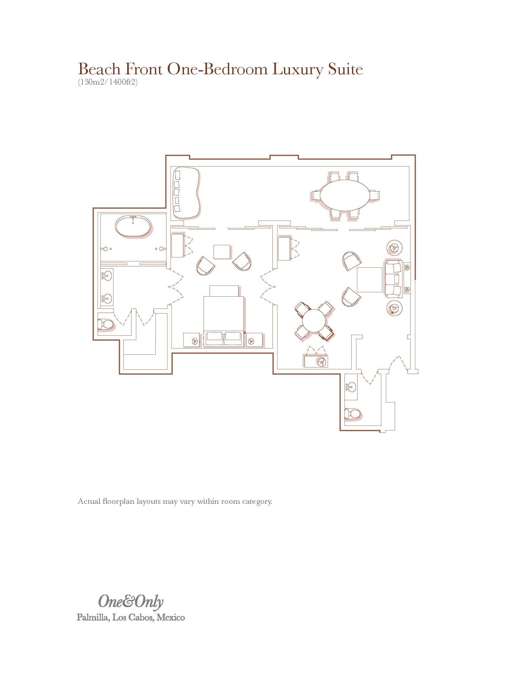 • Beach Front One Bedroom Luxury Suite (130 кв. м) — c видом на пляж и океан, состоит из спальни (кровать King-size), гостиной, ванной комнаты, отделанной мрамором с душем и ванной, гардеробной, террасы с зоной отдыха (с диванами для отдыха).