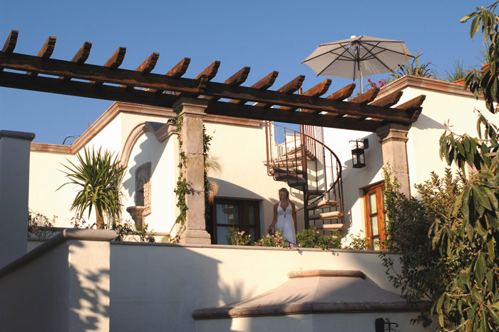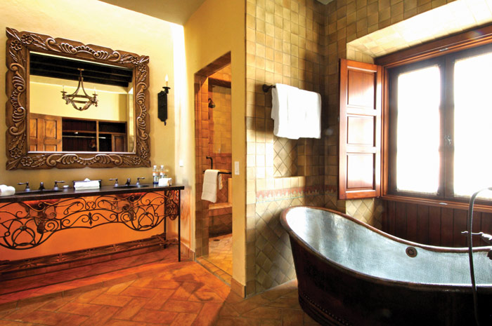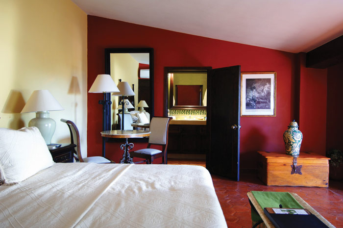 Стены с декоративной штукатуркой белого цвета, боведас (лепные потолки), интерьер, выполненный из дерева темных тонов, ванные комнаты, отделанные керамической плиткой Talavera, раковины из полированной меди и камины, в которых пылают дрова, – все это служит олицетворением богатой архитектурной истории города Сан-Мигель. Номера украшены подлинными картинами кисти местных художников, а покрывала и ковры, сотканные вручную, создают атмосферу тепла и домашнего уюта. в каждом номере есть частные дворики с бассейном. Два номера имеют наружный душ.