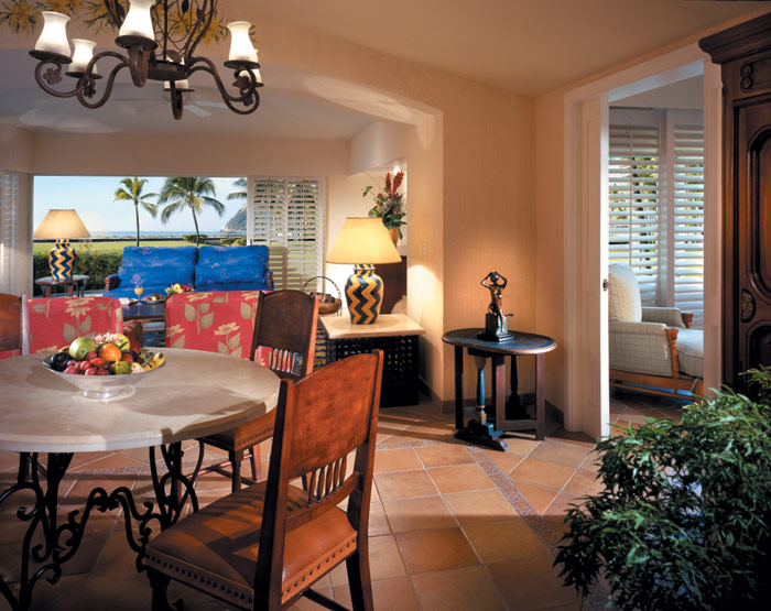 One Bedroom Suite (100 кв. м) - спальня с кроватью king-size, отдельная гостиная и столовая, ванная комната с ванной и душем, гостевая ванная комната, из окон открывается вид на океан. Номера этой категории расположены в секторе вилл.