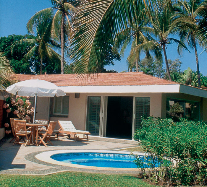 Villa Room Ocean View (46 кв. м) - кровать king-size или две двуспальные кровати, ванна якомната с джакузи, просторная терраса с которой открывается вид на море и пляж. Номера этой категории были недавно обновлены, расположены они в уединенном секторе вилл.
