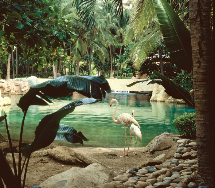 Из окон номеров открываются прекрасные виды на океан, поле для гольфа или тропический сад, в гуще которого обитают лебеди, фламинго и разнообразные тропические птицы. Интерьеры номеров выдержаны в ярких, солнечных тонах.