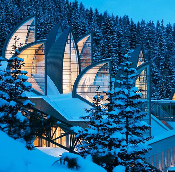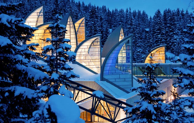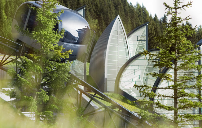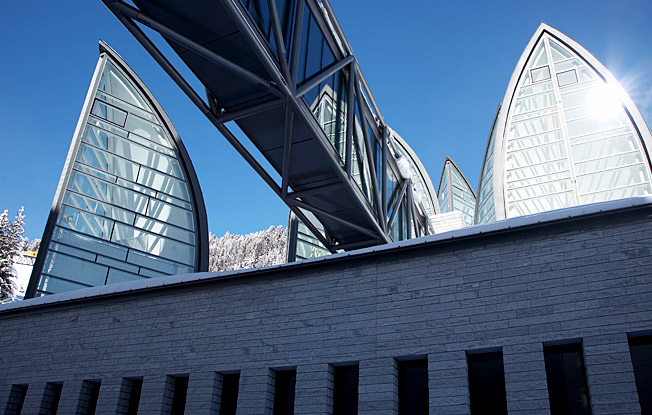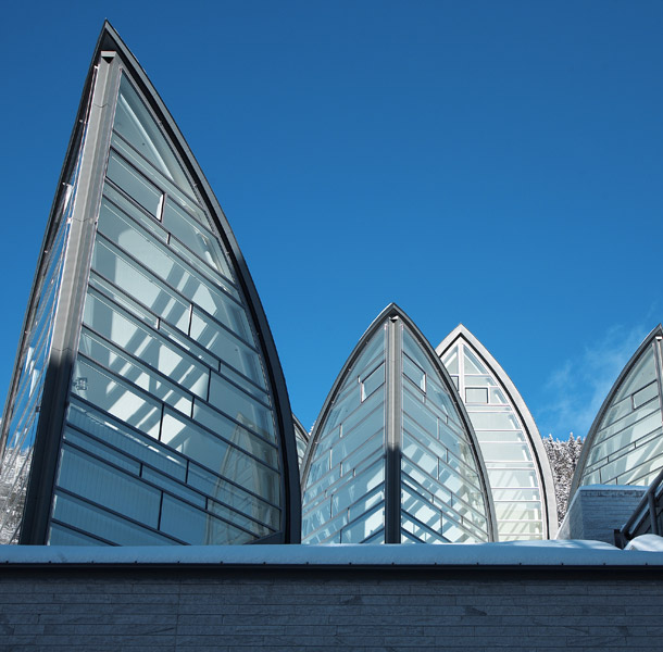 План состоял в том, чтобы не строить надземную часть здания. В то время как большинство помещений функционального назначения прячутся в горе, выступающие из здания элементы (листья, деревья и застекленные крыши особой геометрии) демонстрируют приход нового.
