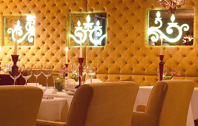 Почувствуйте вдохновение от разнообразия и витальности нашего роскошного меню. Парадный гала-обед, фантастический фуршет или просто романтический ужин с танцами позволят провести вам незабываемый и преисполненный удовольствий вечер в нашем Grand Restaurant.