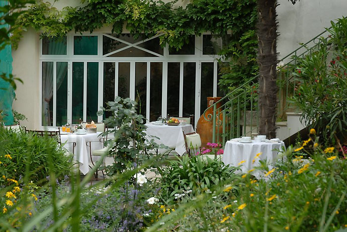 Завтрак может быть подан в 4 вариантах в ресторане отеля, или в саду отеля, или в номере с 7 часов 30 минут без ограничения времени: