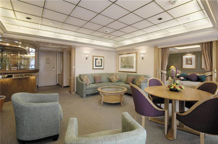 Каждая каюта оформлена в мягких, нежных тонах, чтобы создать атмосферу спокойствия и уюта. В каютах предоставляются круглосуточное обслуживание с доставкой еды и напитков, телевидение, радио, прямой телефон и фен. Все каюты подразделяются на четыре основные типа, которые могут отличаться на каждом отдельном корабле, включая каюты, предназначенные для размещения больших семей и компаний друзей. Выбрав соответствующий тип, Вы можете выбрать определенную категорию каюты, которая наиболее полно отвечает Вашим запросам.