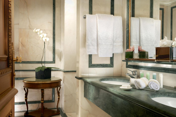 Номера имеют элегантные интерьеры в имперском стиле XIX века, выдержанные в теплых тонах, с отделкой из дерева, лепниной на потолках, изящной мебелью, красивыми драпировками и изысканными украшениями. Ванные комнаты отделаны мрамором, в некоторых номерах есть собственная турецкая баня.