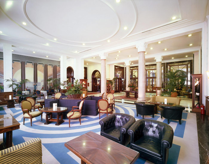 Здание отеля выполнено стиле модерн. Итальянский Институт Прекрасных Искусств признал его памятником архитектуры. Просторные залы, мягкие ковры, антиквариат, шикарная мебель, мраморные ванные комнаты переносят гостей в ушедшую эпоху. В оформлении интерьеров преобладают спокойные пастельные тона.