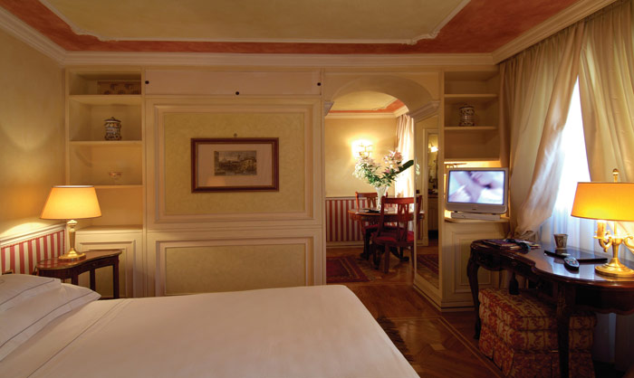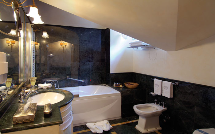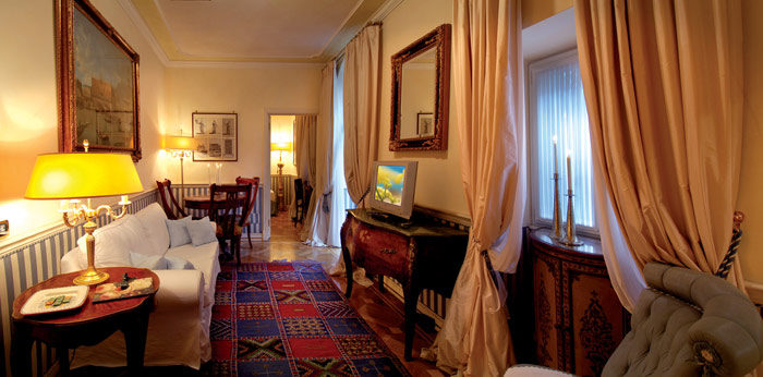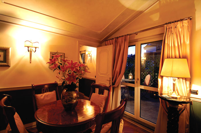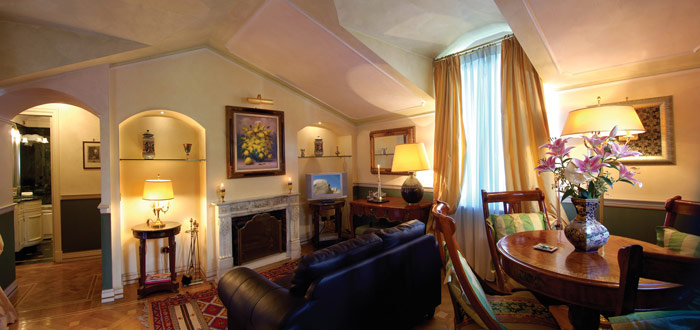 Suite (45-55 кв. м) - состоит из гостиной с обеденной и рабочей зонами, 2 спален (есть возможность добавить раскладушку для ребенка), оборудованной мини-кухни, гардеробной, ванной комнаты с джакузи или большой душевой кабиной. Выходит на исторический центр Милана или на живописный сад во внутреннем дворе отеля. В двух номерах имеются камины, в трех номерах – террасы.