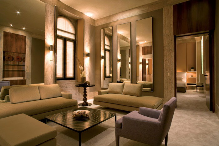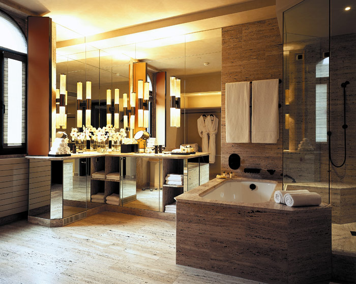 Номера имеют современный стильный интерьер и оформлены ценными породами дерева, мрамором травертин, многочисленными зеркалами, светильниками из венецианского стекла. Во всех номерах — видео и аудио аппаратура от Bahg & Olufsen, просторные ванные комнаты с окнами, гардеробные комнаты, рабочая зона с письменным столом.