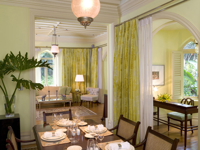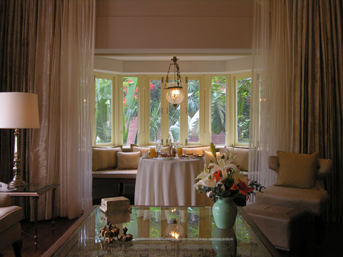 Luxury Suite - просторные номера с частной верандой с видом на сад. Спальня, большая гостинная комната, столовая. Услуги дворецкого, возможность выбора номера для курящих или некурящих, джакузи.