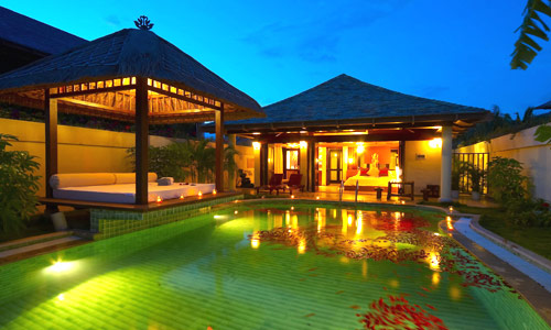 3 Rooms Villa – 3 спальни (две спальни с большой кроватью, спальня с двумя стандартными кроватями), 5 ванных комнат, зал, кухня, беседка, бассейн, автостоянка.