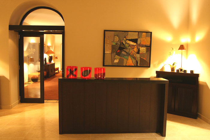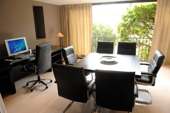 Корпуса La Villa, которые построены в классическом средиземноморском стиле и напоминают окружающие деревушки, а также поселения северной Италии, примостились на холмах среди пышного сада, скорректированного замыслами дизайнеров: кипарисовые деревья, миртовые заросли, густые кустарники теперь сами стали предметами искусства и играют важную художественную роль в проектах мастеров. Подобное же внимание к каждой детали заметно и в скрупулезно проработанных интерьерах номеров, в которых преобладают "вечные материалы": камень, шестиугольная плитка и полированное дерево. Вместо обычного средиземноморского попурри дизайнерам Филиппу Хурелю и Жюли Приска удалось создать особенное место с тщательно продуманным освещением, изысканной меблировкой, коврами и картинами.