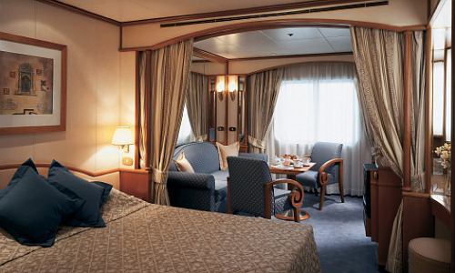 Veranda Suite (27 кв. м + веранда 4,5 кв. м) – состоят из спальни, мини-гостиной, гардеробной, отделанной тиком веранды с застекленными дверями и мраморной ванной комнаты с ванной. Некоторые номера рассчитаны на 3 гостей. Расположены на 5,6,7 палубах лайнера