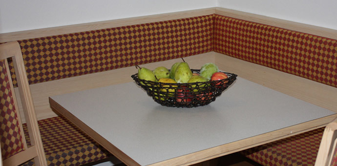 Во всех номерах — элегантные интерьеры, выполненные в современном стиле и выдержанные в светлых тонах, с удобной мебелью, ковровым покрытием, мягким освещением, во многих номерах есть тирольская печь.