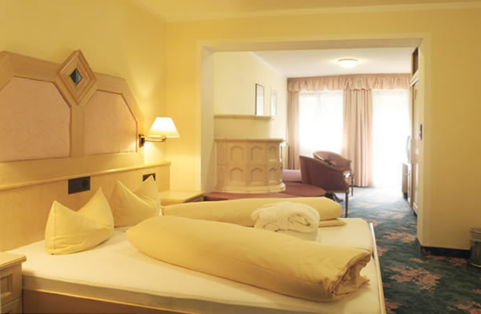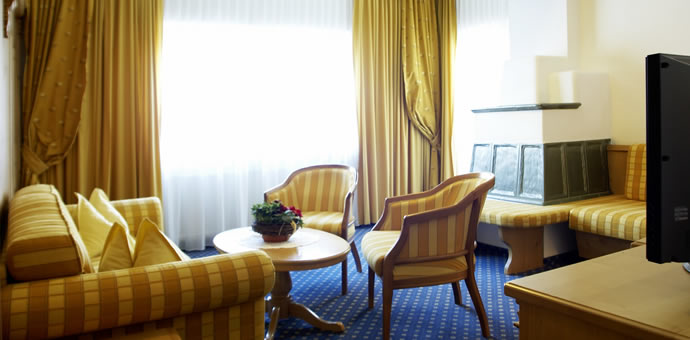 Regina Suite (45 кв. м) - просторные номера, отделанные панелями из швейцарской сосны, состоят из 2 спален, гостиной с тирольской печью, ванной комнаты с джакузи, отдельной туалетной комнаты, балкона.