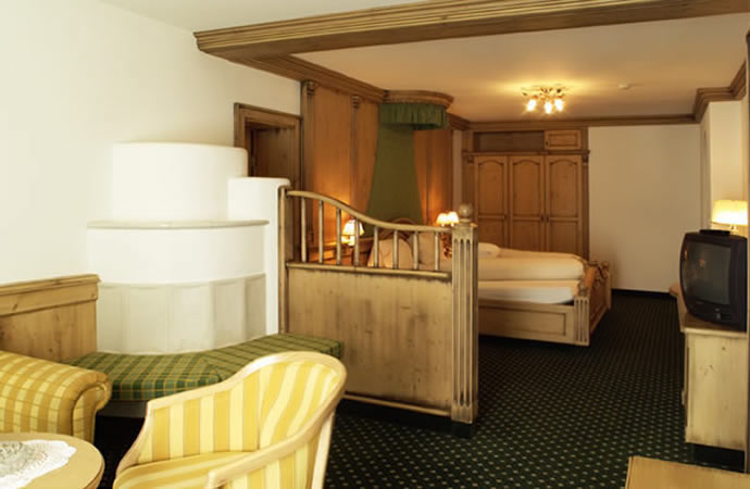 Luxury Family Suite (60 кв. м) - состоит из 2 спален, просторной гостиной с тирольской печью, ванной комнаты с джакузи, отдельного туалета, сауны, балкона. Макс. 4 чел.