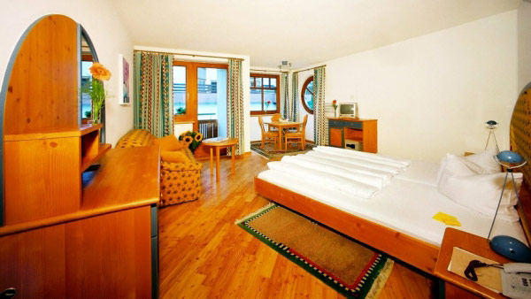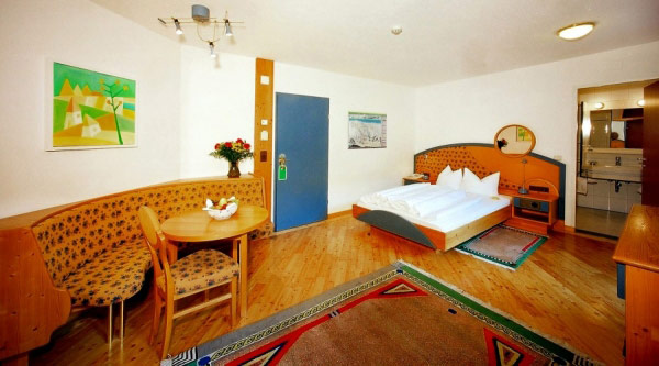 • Double Room Brunnenkogl (40 кв. м) - состоит из спальни с гостиной и обеденной зонами, ванной комнаты, туалетной комнаты, балкона, выходящего на улочки курорта.