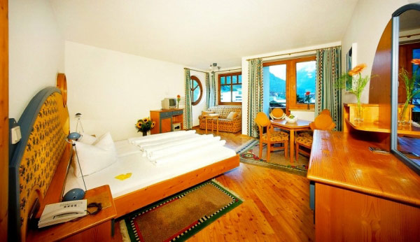 • Junior Suite Nederkogl (55 кв. м) - состоит из прихожей, спальни, гостиной с керамической печью, ванной комнаты, туалетной комнаты, балкона, выходящего на улочки курорта.