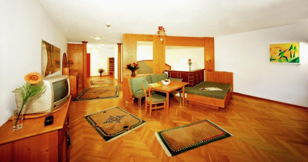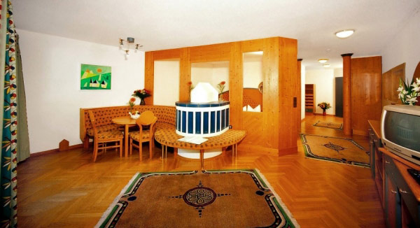 • Suite Soelderkogl (65 кв. м) - состоит из прихожей, спальни, гостиной с керамической печью, ванной комнаты, туалетной комнаты, балкона, выходящего на улочки курорта.
