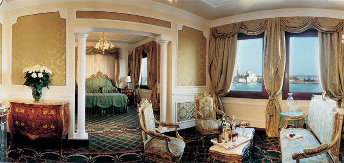2 Grand Lagoon Suites (65 кв. м) – спальня, гостиная, просторная ванная комната, гардеробная, открытая терраса с великолепным видом на San Marco Basin и на остров San Giorgio. Кровати, украшенные как произведения искусства.