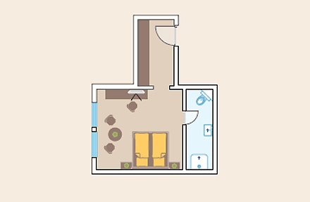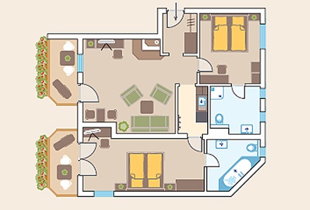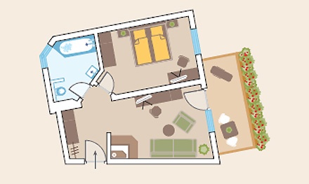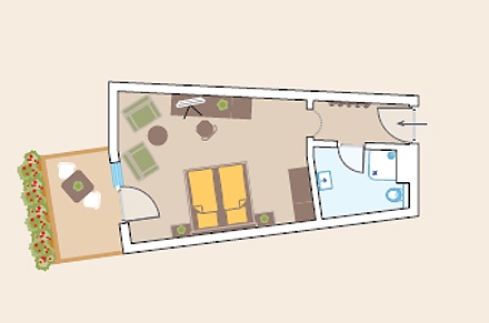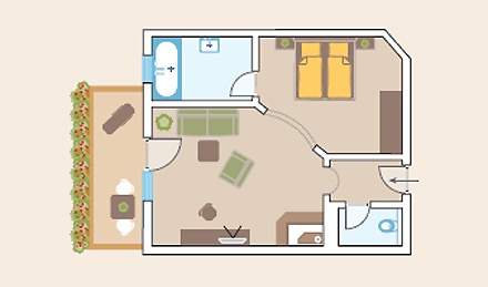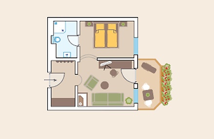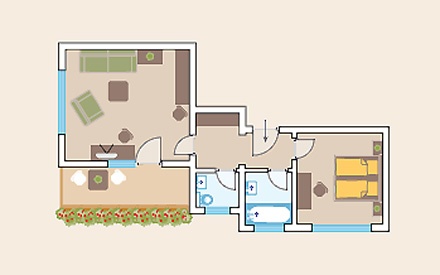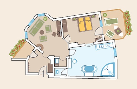 Suite "Salern" ( 45 кв. м) - состоит из спальни, спальни-гостиной, маленькая кухня и ванной комнаты, у некоторых номеров балкон.