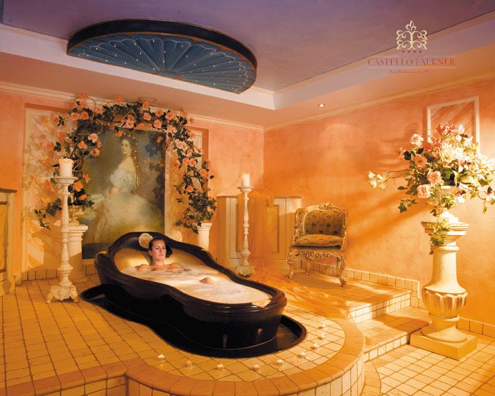 Ванны: с лавандовым маслом, молочной сывороткой, с медом и козьим молоком, с водорослями, талассо ванна с солью и водорослями, фито-ванна.