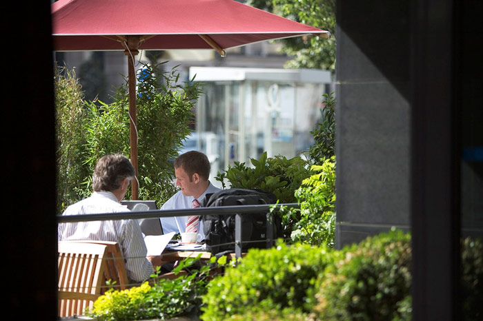 Рядом с каждым конференц-залом находится просторная комната отдыха с торговыми автоматами. Ресторан "o'40" предлагает обширное меню для участников корпоративных и торжественных мероприятий.
