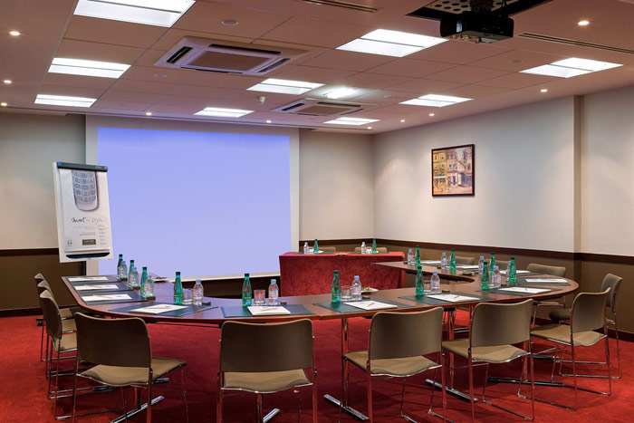 Отель располагает тремя модульными конференц-залами, вмещающих до 160 человек. Залы оборудуются в зависимости от потребностей клиентов. Техническое оснащение: Wi-Fi Интернет (бесплатный), высокоскоростной Интернет, видеопроектор, экран, презентационный проектор, беспроводные микрофоны, лазерная указка, современная аудио техника и акустическая система, новейшие телекоммуникационные технологии, внутренний мобильный телефон, кондиционер.