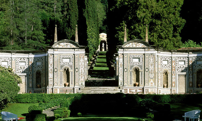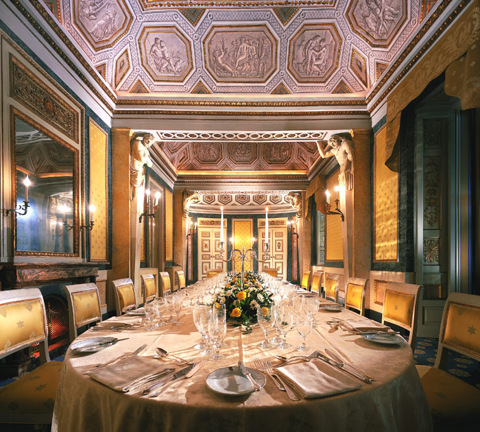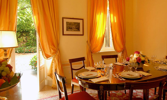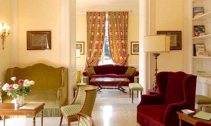 В отеле прекрасно сохранилась изысканная и романтичная атмосфера прошлых веков. Окрестный парк разбит по образцу ренессансных садов и хранит ряд старинных памятников, среди которых знаменитый храм Нимфеум, украшенный мозаиками XVI века, и пятисотлетний платан — живой свидетель событий вековой давности. Холлы вилл украшены мраморными скульптурами, выполненными представителями школы Антонио Кановы, стены декорированы оригинальными полотнами французских и итальянских художников.