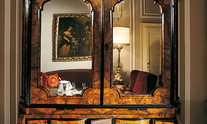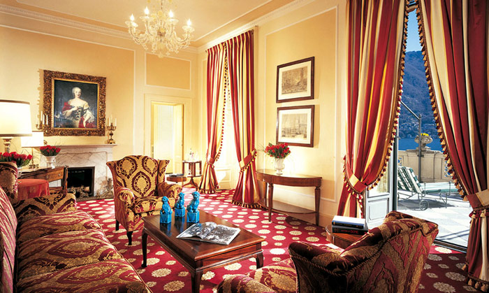 Suite (65-75 кв. м) - отреставрированные номера, с уникальной и старинной мебелью, драгоценными тканями и шелками. Большая отдельная гостиная и большая спальня (две кровати twin или одна двойная кровать по запросу). Номера расположены или в резиденции кардинала Tolomeo Gallio или в Queen's Pavilion. С захватывающим дух видом на озеро. Несколько номеров с балконом. Мраморная ванная с джакузи, душем, ванной, купальный халат. Возможно объединение номеров.